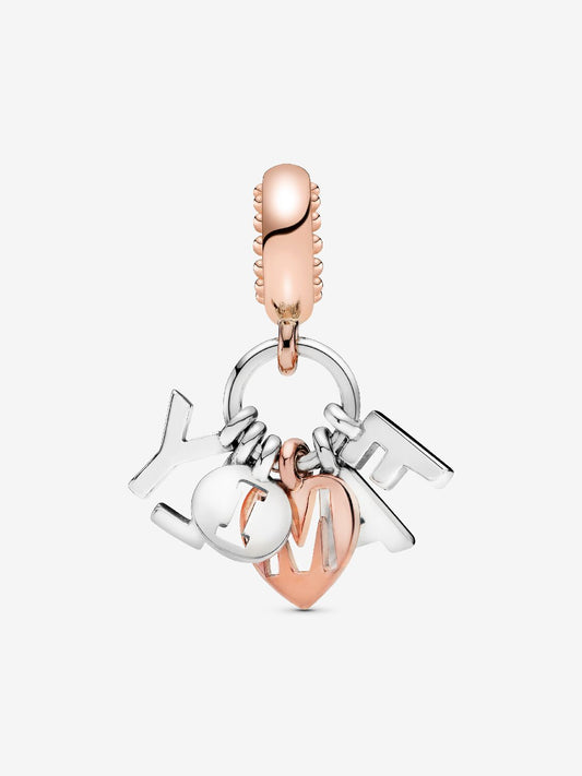 Charm Corazón con Infinito resplandeciente “Family Forever and Always”